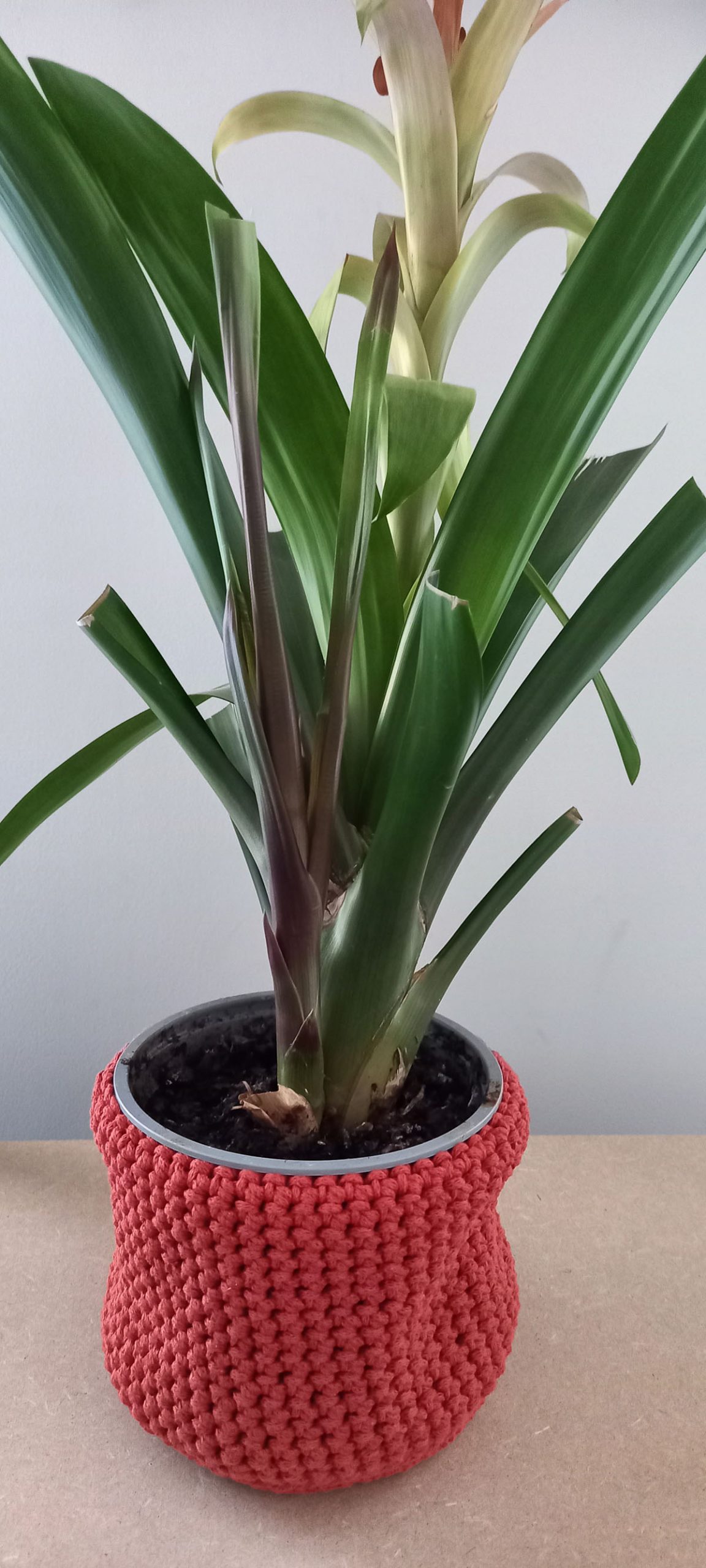 Cache pot de fleurs réalisé au crochet à la main. 100 % coton