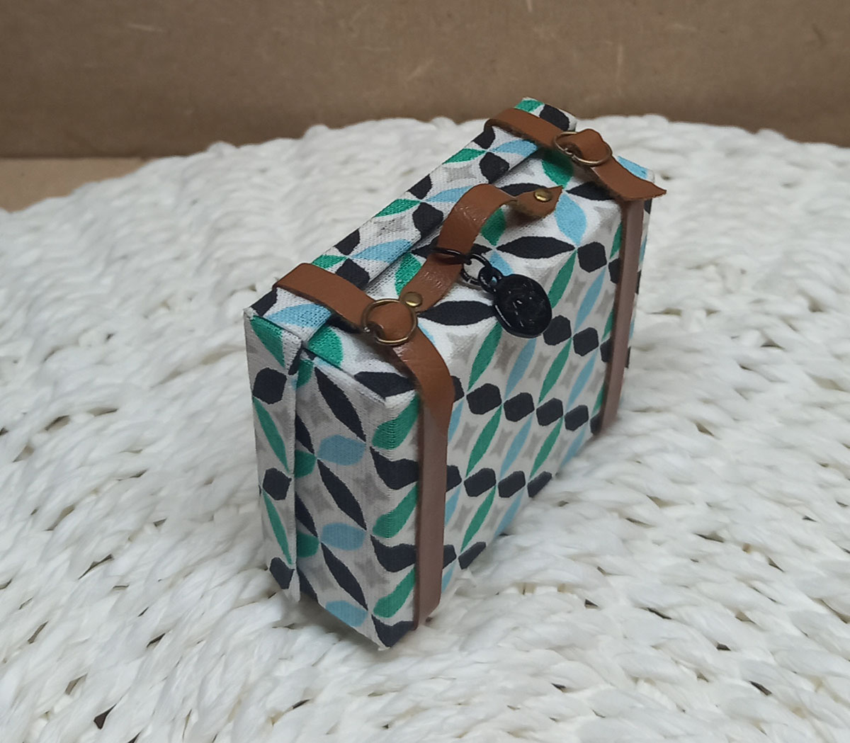 Mini valise à l’échelle 1/12 réalisée entièrement à la main. Idéal pour maison de poupée.
