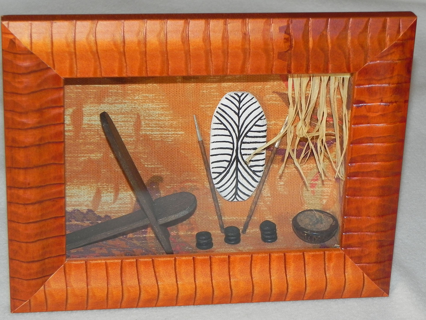 Vitrine à l’échelle 1/12 ambiance Afrique. Modèle unique. Tous les éléments sont faits main.